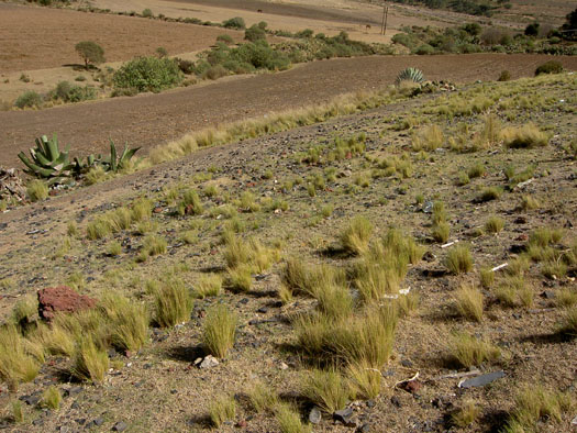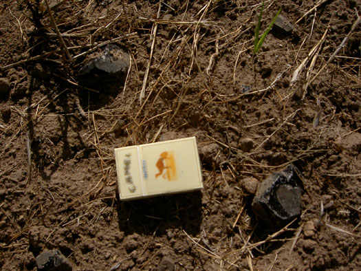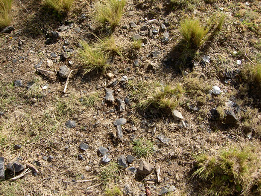 周囲の風景。降りた場所の脇で見つけた黒曜石が散布する場所。黒い石が黒曜石。