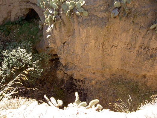 谷の写真(右側の崖に黒曜石が沢山見られます)。拡大写真(ちょっとわかりずらいか...)。