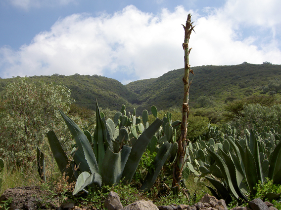 途中に沢山生えているサボテンたち。一番右の写真はマゲイ(竜舌蘭)というテキーラやプルケというお酒の原材料になるサボテン。