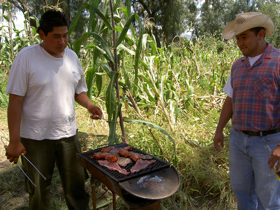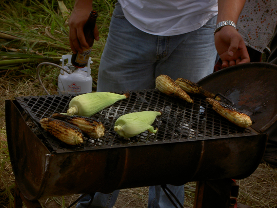 トウモロコシ畑の脇でミサをやったり、踊りを踊ったりします。そして、僕らの目的はバーベキュー。