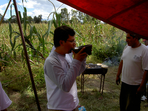 10月7日には近くの村の祭りに招待され羊の丸焼きを食べまくりました。2軒のお家を訪問したところで限界、もう食えん!って感じでした。8日,9日もお昼に招待され食べ続け。10日の夜はお仕事のボスのお供で在メキシコ日本大使館へ夕飯をごちそうになりに行き,また食べまくり...。