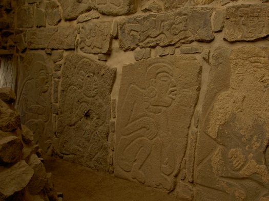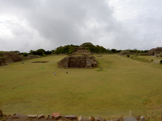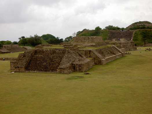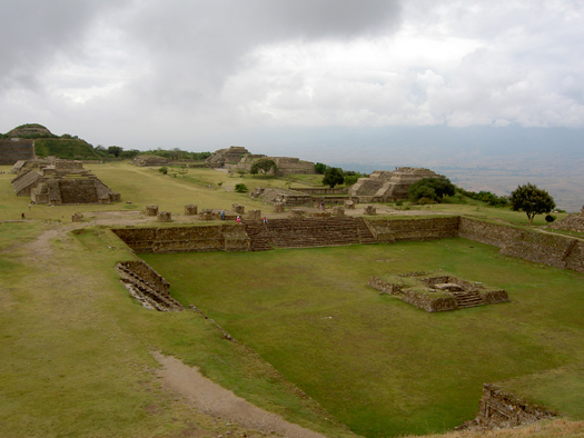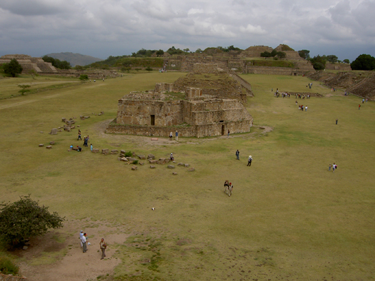 山の上にあるモンテ・アルバン遺跡 下段中央は有名な「踊る人々(ダンサンテDanzantes)」の彫刻