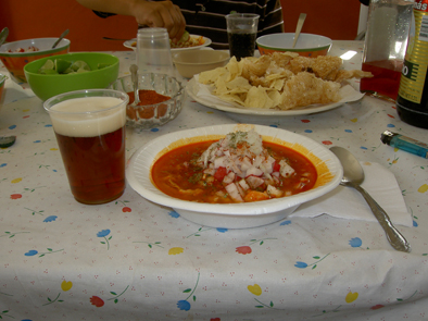 今回のメニューは豚肉と大粒のトウモロコシを煮込んだポソーレというスープ