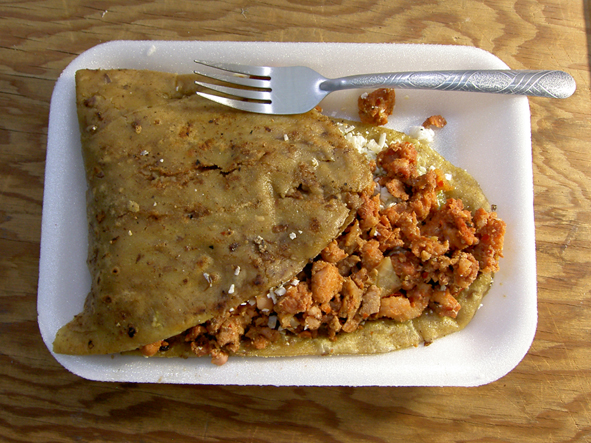 ラボがあるサン・フアン・テオティワカンでは、月曜日と金曜日に市が立ち様々な露天が出ます。今日はそのような露天の一つで買ったワラチェという食べ物が晩ご飯になりました。