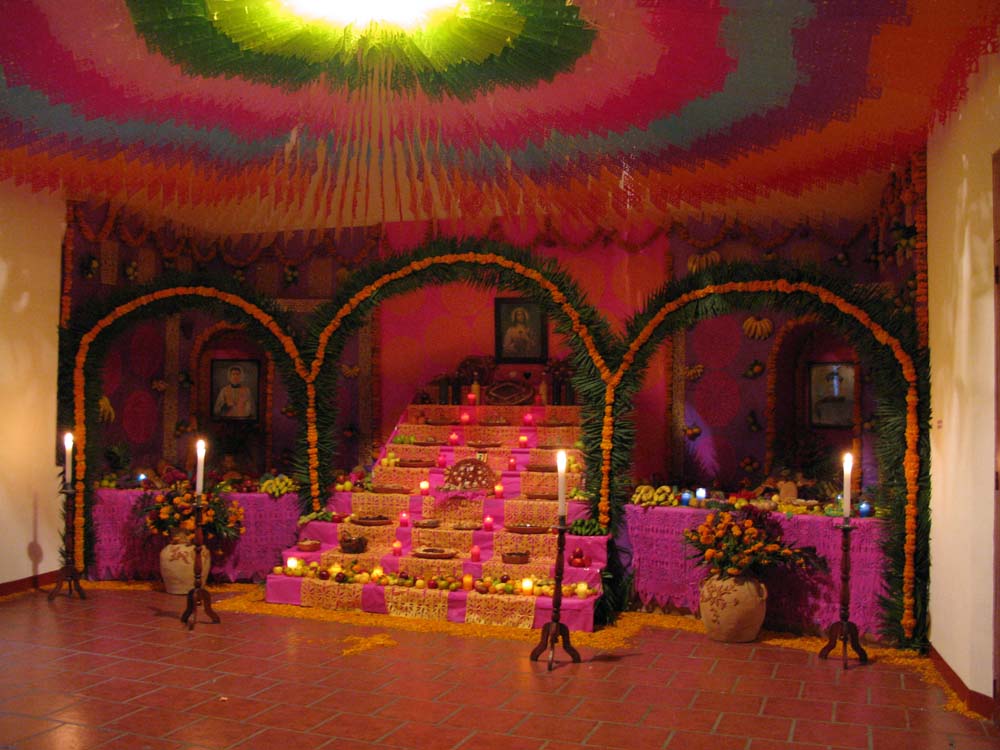 なかには骸骨の人形や絵画などが色鮮やかな姿で展示されていました。もちろん、立派な祭壇も用意されていて多くの人たちが見学に訪れていました。