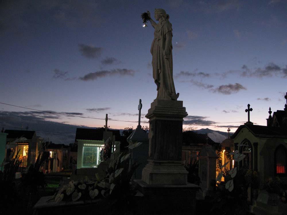 次は町の墓地を見に行く事に。墓地についてみると、まだ時間が早かったせいかあまり人は集まっていませんでした。まあ、おかげでゆっくりと墓地の中を歩き回る事ができ、写真も撮る事ができました。墓地は小さな家々があつまった小さな町のようでした。どのお墓も個性的で、とても綺麗に飾られています。