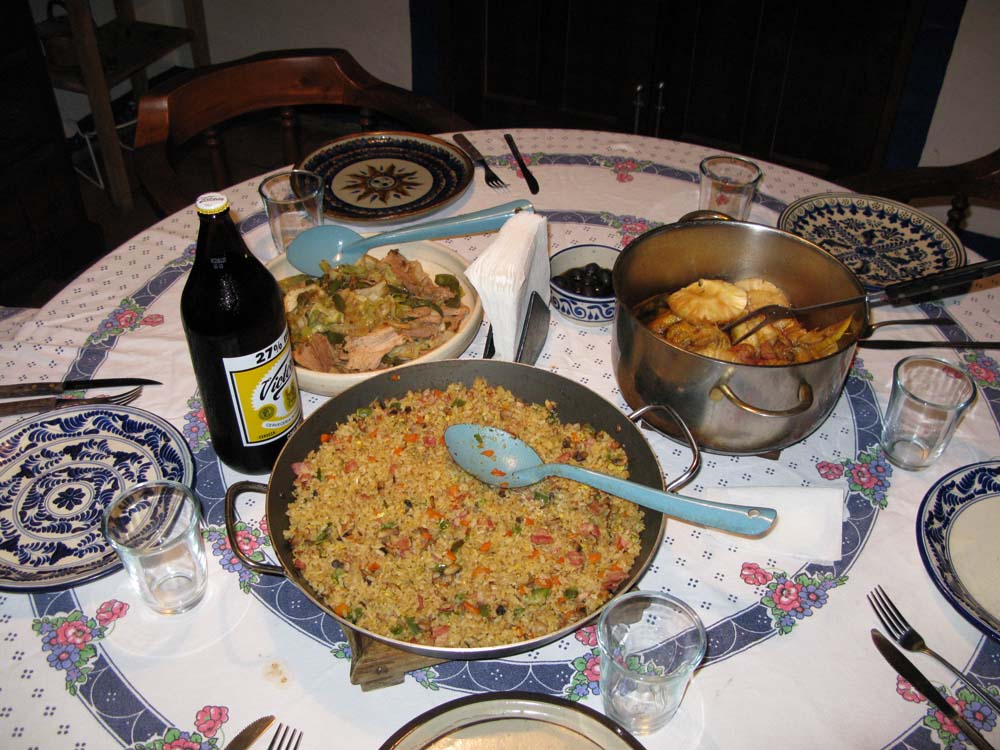 必要な材料は昨日のうちに買い込んで来たので、昼過ぎから支度をする。メニューはチャーハン、回鍋肉もどき、そして鶏肉のパイン煮。本当は典型的な日本食を作ってあげたかったのだが、ここハラパで材料を揃えるのが難しかったのと、なにより、僕自身が「典型的」な日本食の作り方を知らないので、こういったメニューになってしまった...。