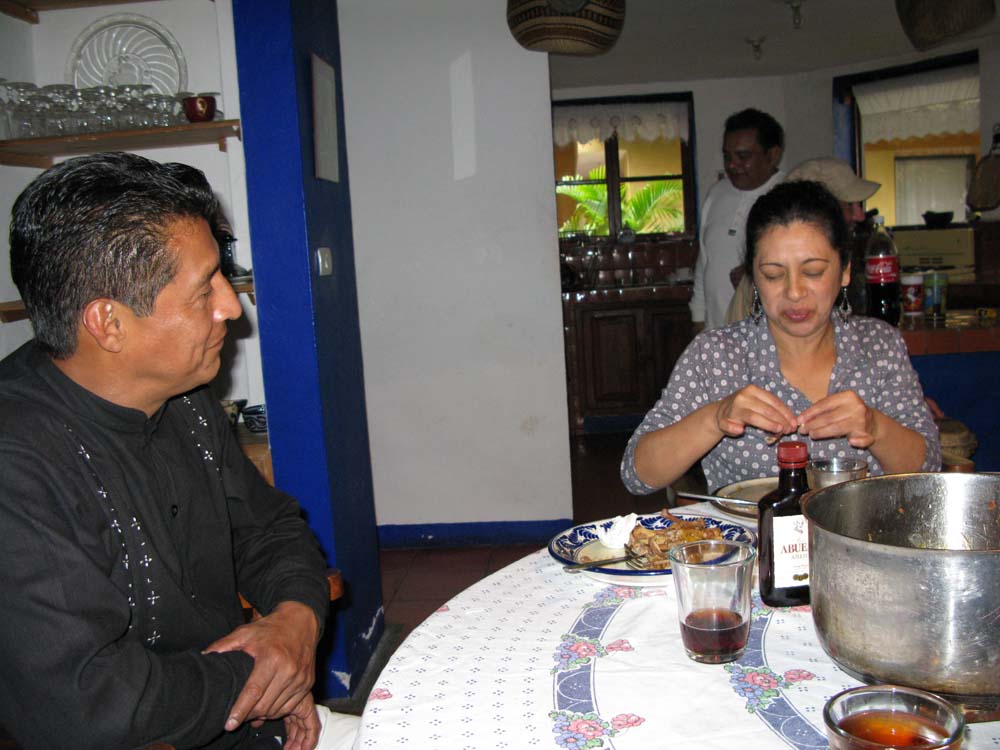 今日は友人Maríaは先月からオアハカに仕事に行っているので、Maríaのお母さん、お母さんの彼氏、Maríaのお兄さん、お兄さんの彼女というメンバーになった。まあ、Maríaとはいずれまた一緒に働く事もあるだろうからその時にでも何か作ってあげる事にしよう。大量に作りすぎたかなと心配したが、幸いにも、4人とも気に入ってくれたようで殆ど完食してくれた。
