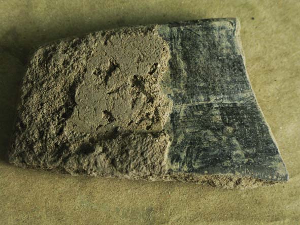 まずは、唯一採集する事ができた土偶のかけら。残念ながら下半身だけしか見つからず、時期決定をするのに大切な顔の部分がなかったので時期ははっきりしません。