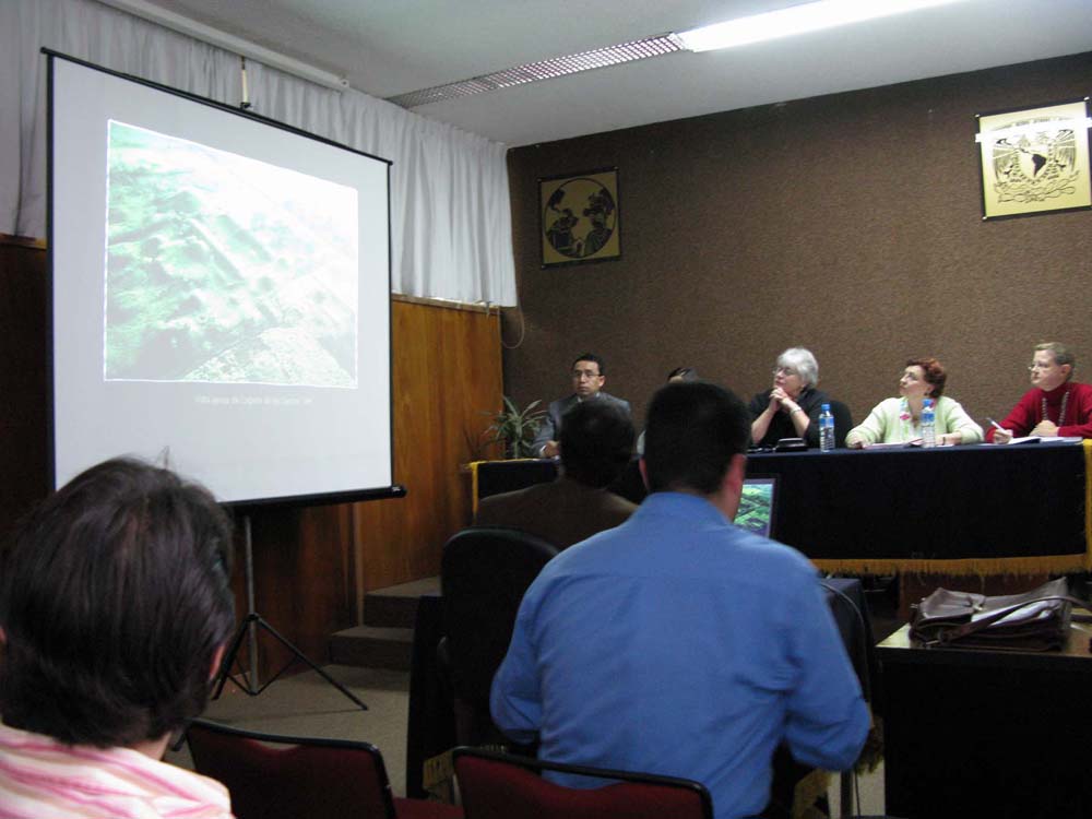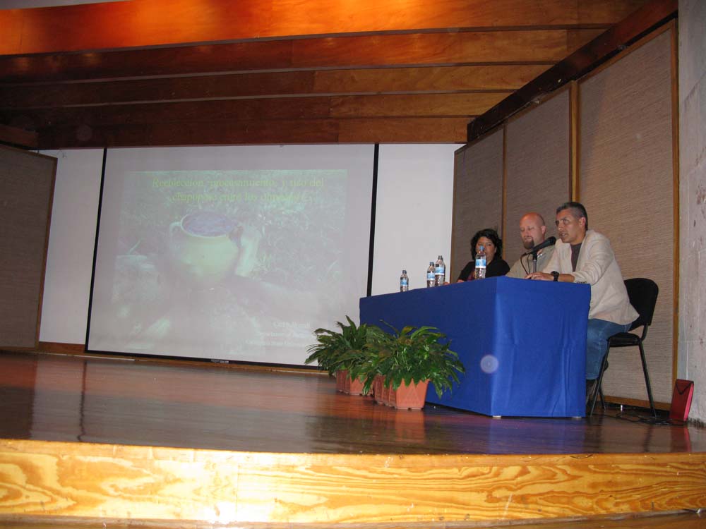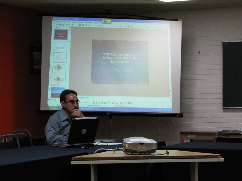 6時からは、企画したConnieの指導教官Dr. Carl Wendtによる、彼の得意分野でもあるChapopoteに関する講演会が予定されていました。準備が遅れていたため十分な宣伝ができず、人が集まるか心配されていたのですが、ベラクルス大学の考古学を専攻する学部生達がかなり集まってくれたので、なんとか会場の7割くらいは埋まりました。
