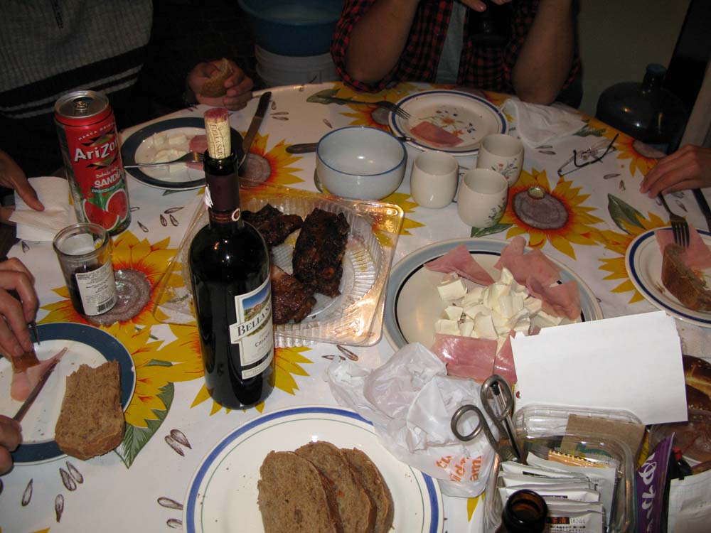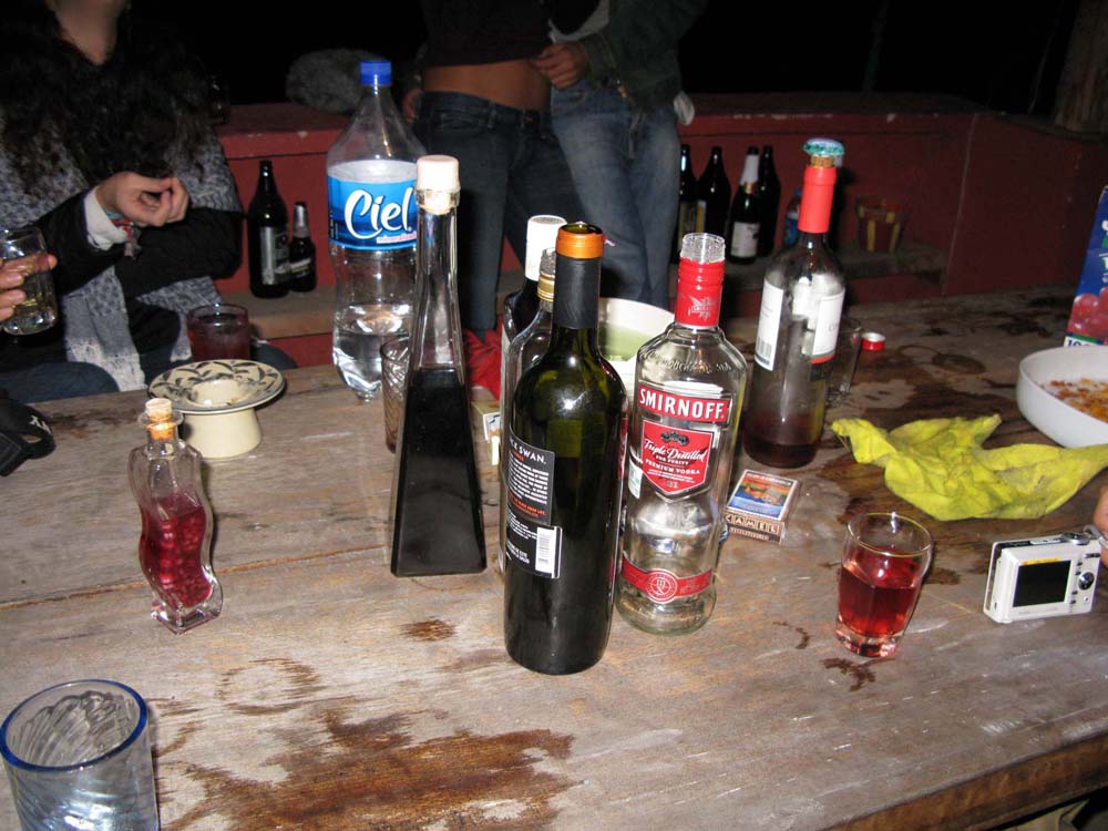 この日は、ハラパから少し離れたところにあるランチョ・ビエホという所に住んでいるPamelaの家でフィエスタ。夕方6時集合のはずが結局全員が集まったのは9時過ぎ...。それから彼女の家に皆で車で移動。途中、ピザやつまみのスナック菓子、それからウイスキーとウォッカを買い込む。ピザやサラダを準備しながら呑み始める。僕は空腹に我慢できず、一足お先に温めなおしたピザをつまみ食い。
