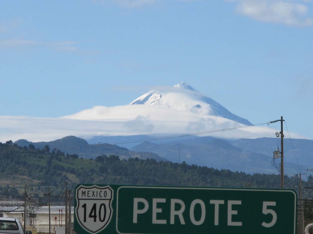 (写真:途中でとても綺麗に見えていたPico de Orizabaという標高5600m以上の山を皆で撮影)