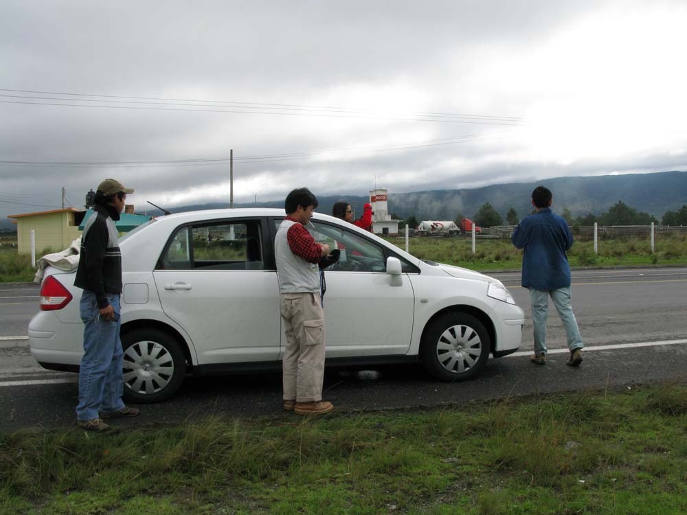 途中、道を間違えてしまい舗装されていない道を進んでいるうちに、大きな水たまりに車がはまってしまい、そこから出すのにかなり苦労しましたが、最初の目的地、Oyamelesに到着。