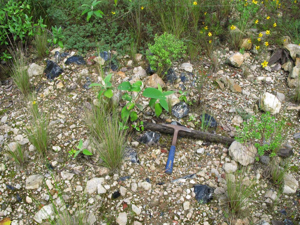 ここは、町の南北に産地があるそうで、とりあえず道路沿いにある所から黒曜石のサンプル採集を始めました。