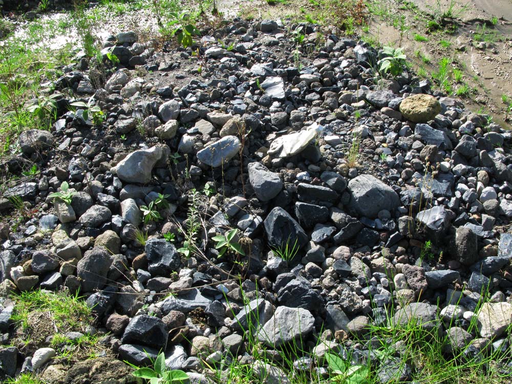 (写真:Zaragozaの町はずれにある河原。河原に転がる黒曜石。)