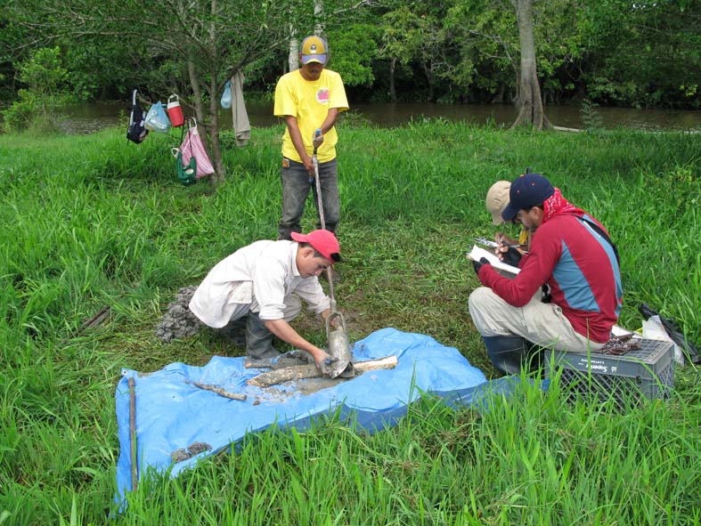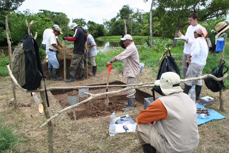 今回の現場は僕が専門としているオルメカ文化研究では比較的有名なアロージョ・ペスケーロ(Arroyo Pesquero)遺跡。40年近く前に大量の仮面や石斧などのヒスイ製品が発見された場所です。遺跡は名前の通り小川(Arroyo)に面していて、周辺は完全なる湿地帯。今回の調査の目的は、40年前に発見されたヒスイ製品を残した人々の居住の跡を見つけ、オルメカ人達がどんな生活をしていたのかを探ることでした。